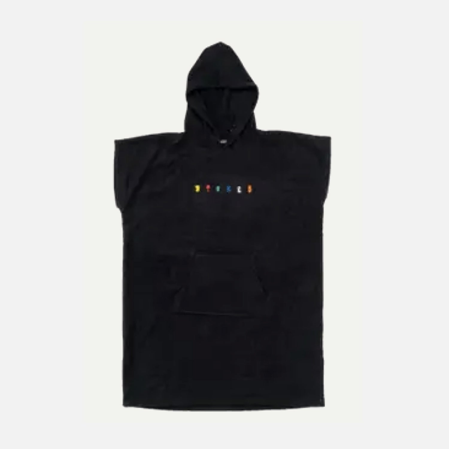 Poncho de surf para niño hecho de toalla suave y absorbente, con capucha y diseño amplio para secarse y cambiarse cómodamente después de surfear o jugar en la playa. Ideal para mantener el calor y la privacidad.