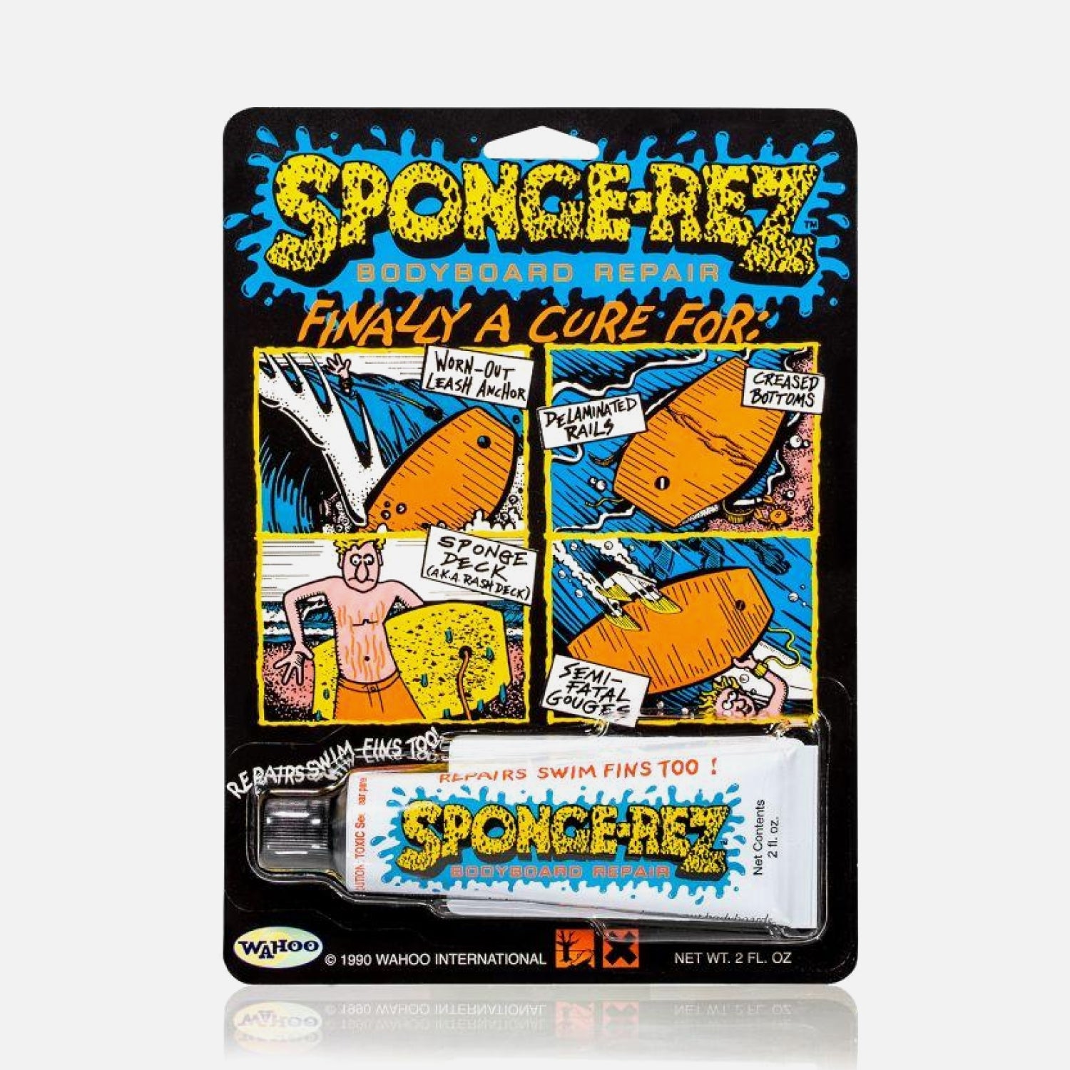 Sponge-Rez es una resina resistente, transparente y ultra flexible formulada para reparar los tipos más comunes de catástrofes a las que son herederas las tablas de bodyboard; ancla de correa gastadas, fondos arrugados, cubiertas, cascos o rieles deslaminados, cubierta de esponja (también conocida como cubierta de erupción) y gubias semi-fatales. Sponge-Rez funciona en todo tipo de materiales de bodyboard, incluidos Ethafoam, Surlyn, EVA, Vinyl y Arcel; sin embargo, derretirá los núcleos de espuma de poliestireno (EPS). Sponge-Rez repara las aletas de natación rotas y desgastadas. Si se aplica a las palas de las aletas, aumenta su rigidez y empuje.